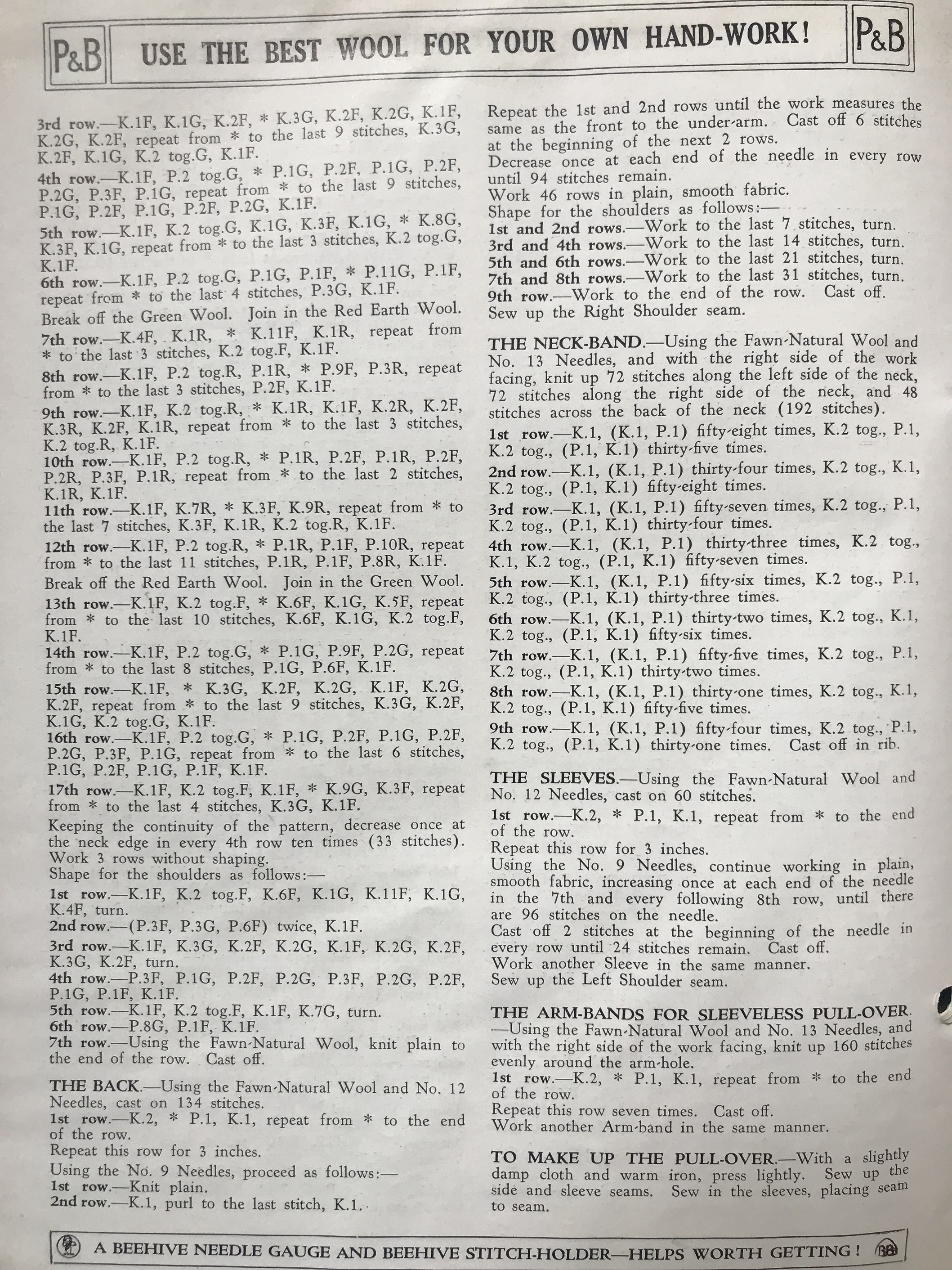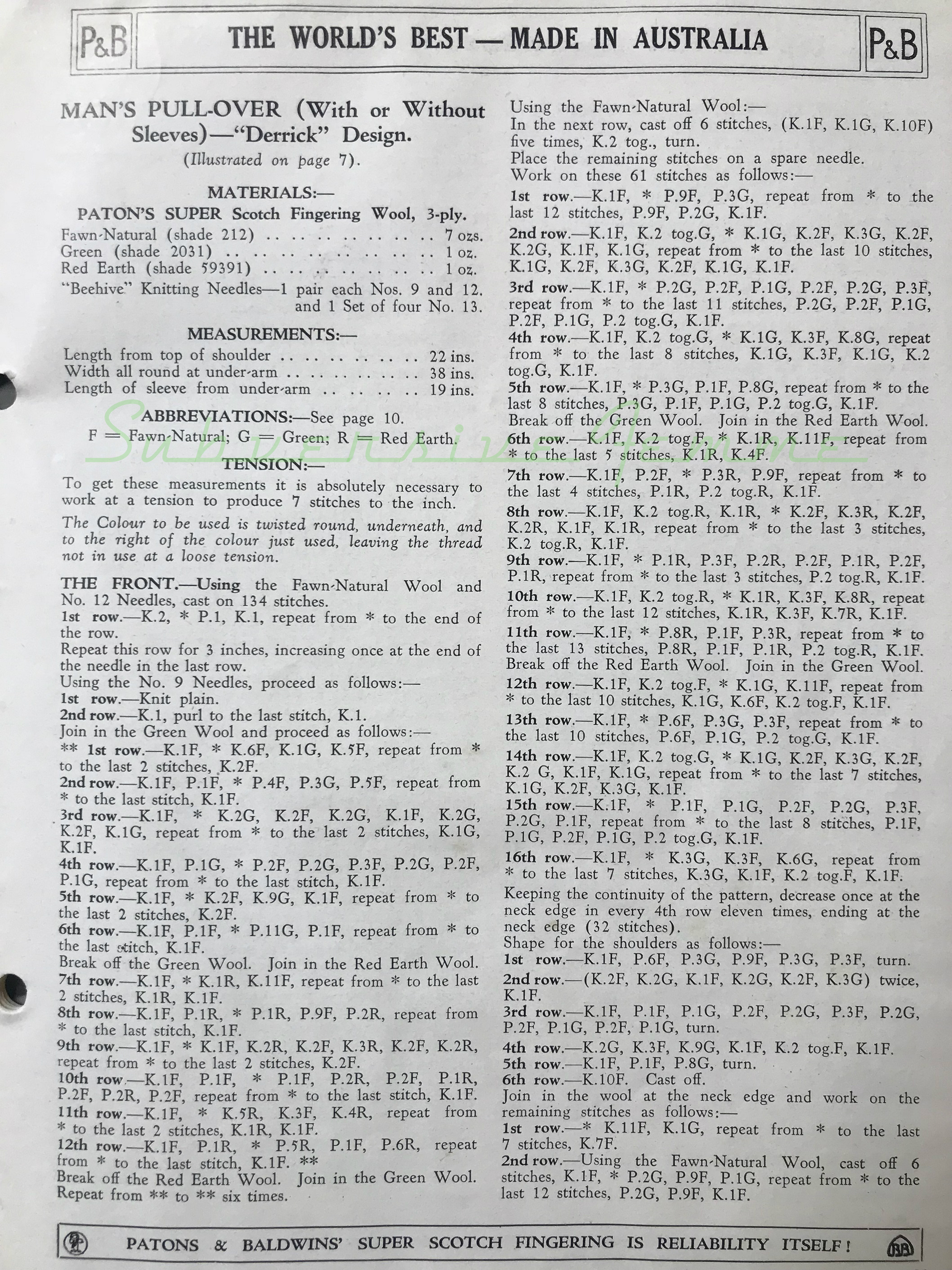 Free Pattern: Derrick pullover or vest, c. late 1930s