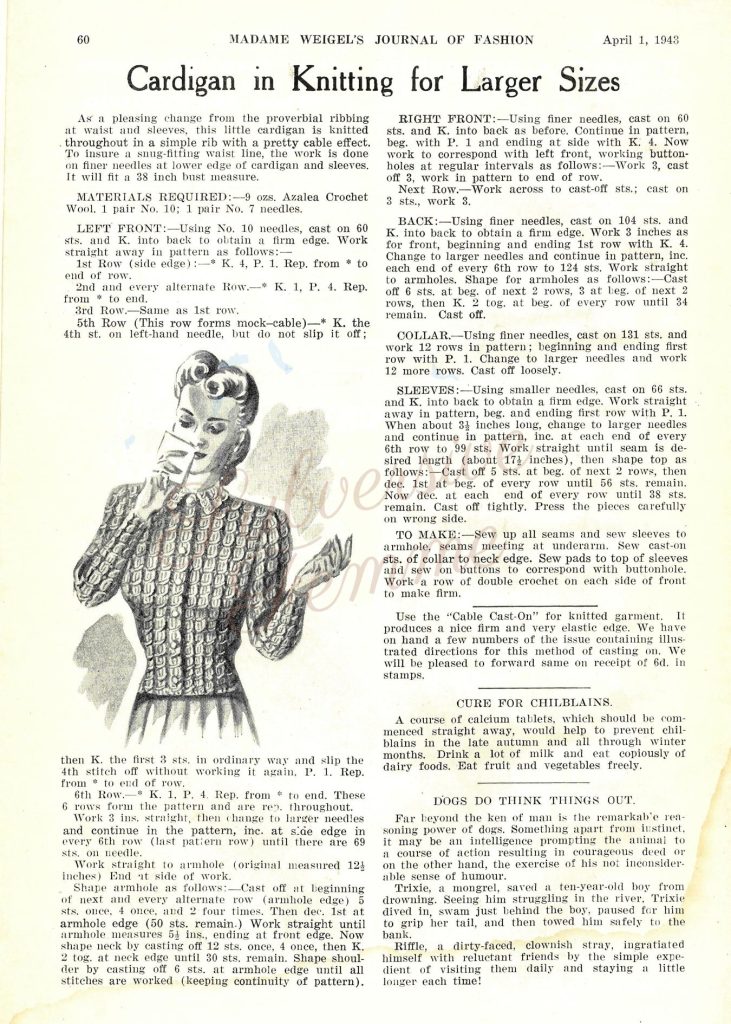 Curvy Month 2: A Pleasing Cardigan, c. 1943