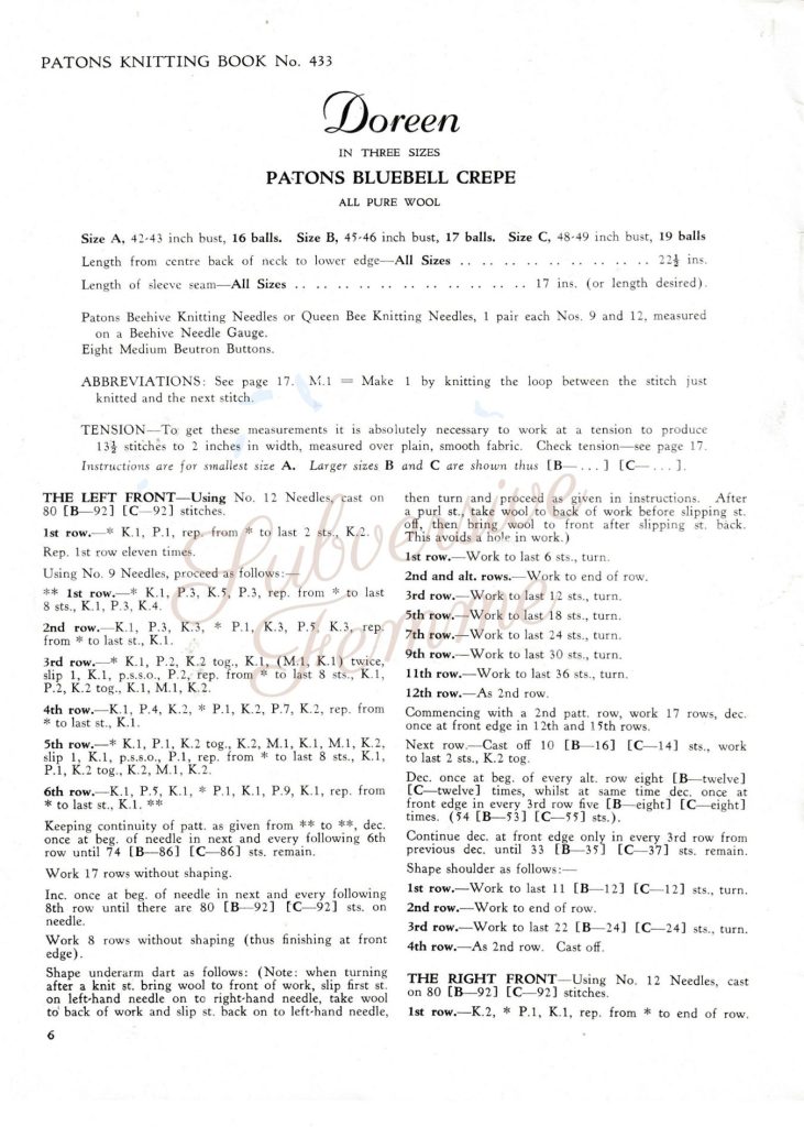 I’m always so excited to share patterns in sizes greater than 44″ – they really are the unicorns, but they’re definitely out there! Doreen is late 1940s, maybe early 1950s and features a really interesting arrowstitch lace pattern.