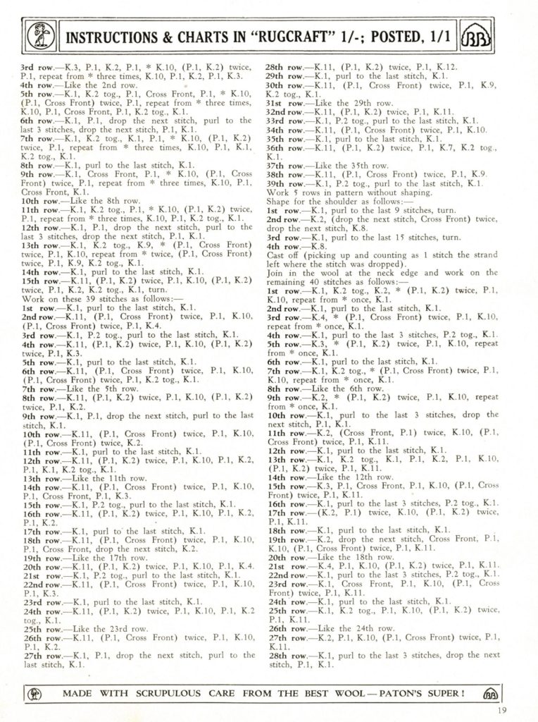 Eileen is from Patons Speciality Knitting 79 – printed circa 1941. She’s quite stretchy so while the pattern says for a 38″ bust it fit my 42″ bust fine.