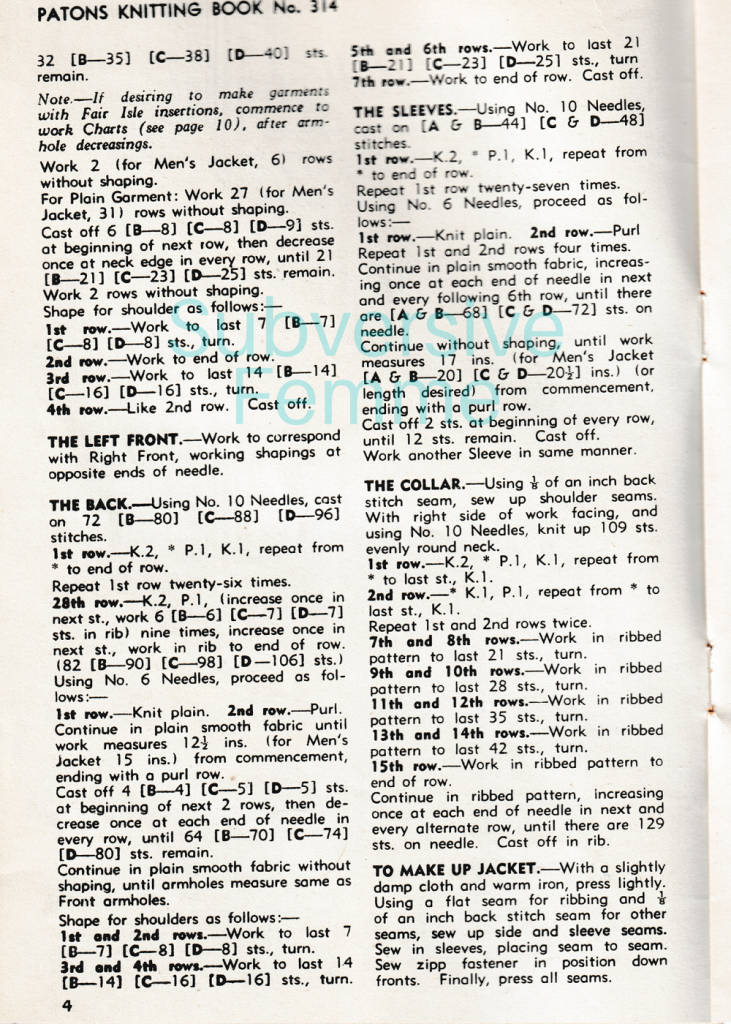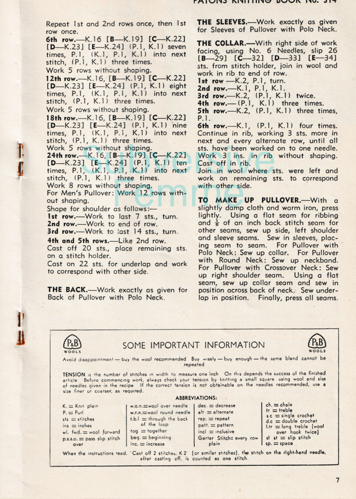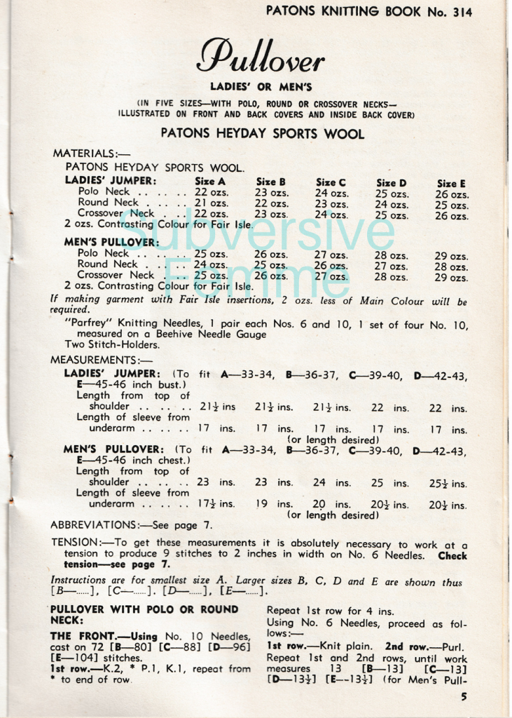 - Published: Patons Knitting Book 314 (circa mid 1950s)