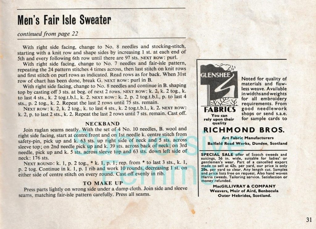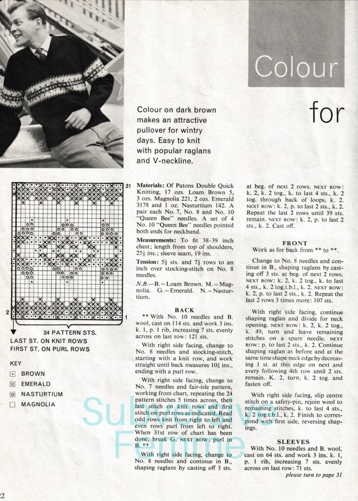 So the Sixties is later than I normally knit from – but this pattern is Jakk’s favourite jumper. Period. Ever. I’m even having to make another one because Jakk is going to wear it out.